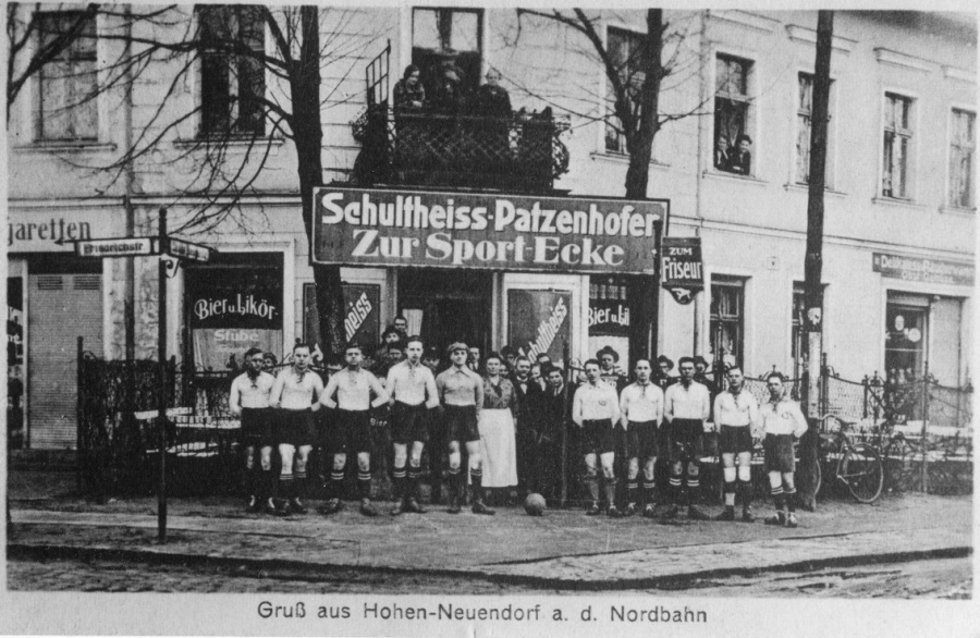 - 29. Juli 2021 – Das neue Begrüßungsfoto zeigt die Arbeiterfußballer des FC Hansa Hohen Neuendorf vor ihrer Vereinskneipe. Gruß und Dank